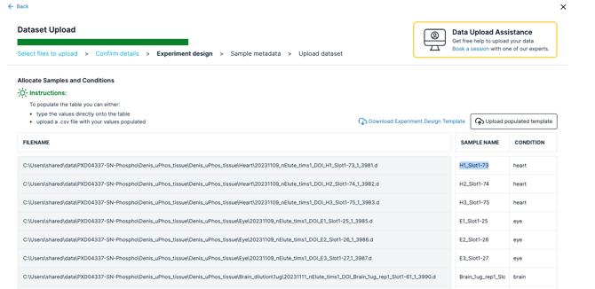 - You can now either create your own Experiment Design or you can upload your own populated template